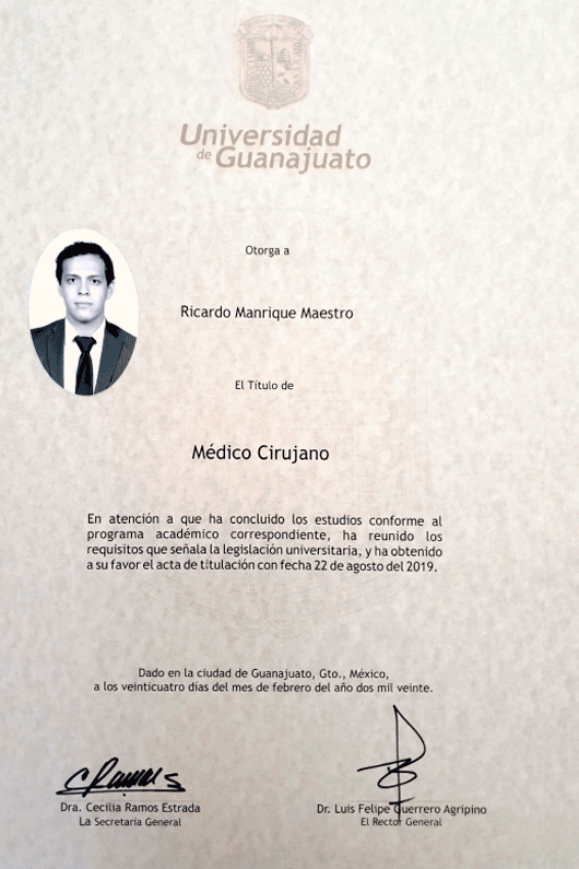 - Licenciatura en Medicina General – Universidad de Guanajuato.