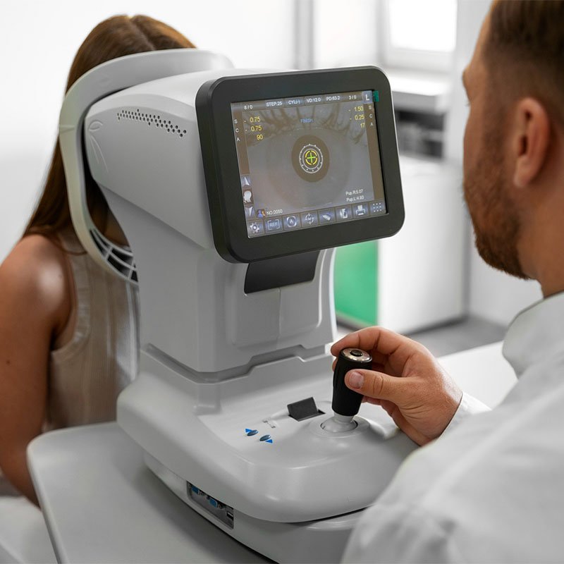 Procedimiento quirúrgico enfocado en tratar enfermedades de la parte frontal del ojo, como córnea, cristalino e iris.Examen de refracción
